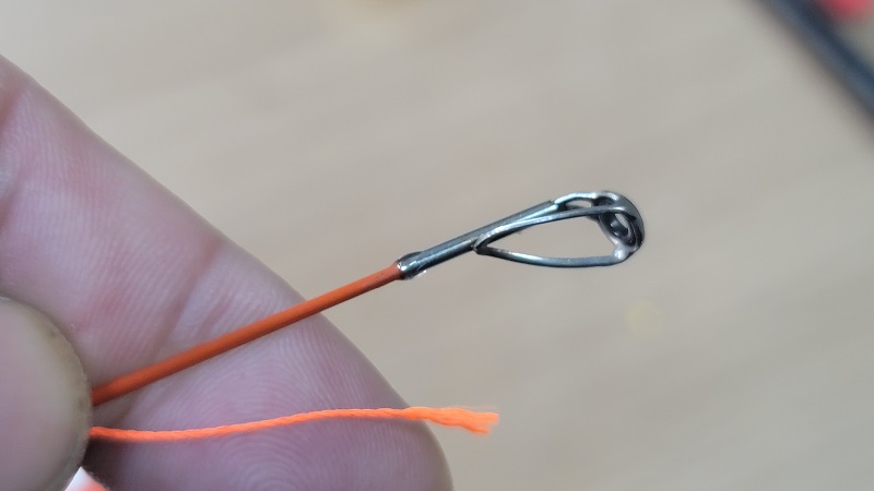랩핑사 컬러는 눈에 확 들어오는 오렌지색으로 결정.. 요즘 바다선상대에는 오렌지색을 많이 사용하는 듯해서 선정했다. 보다 가는 A사이즈로 감고 싶었지만, 발색이 좋지않아 D사이즈의 랩핑사로 감게 되었다.