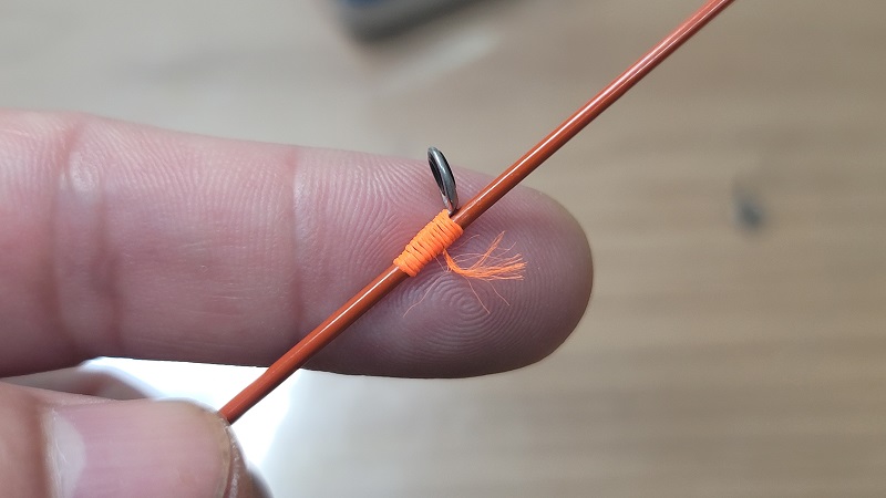 가이드는 순간접착제를 살짝 발라서 임시고정한 상태에서 랩핑사를 감았다. 보통은 마스킹 테이프나 가는 케이블타이를 이용해서 고정하는데, 작은 가이드는 순간접착제을 이용해서 임시고정하는 것이 작업하기 편리하다.