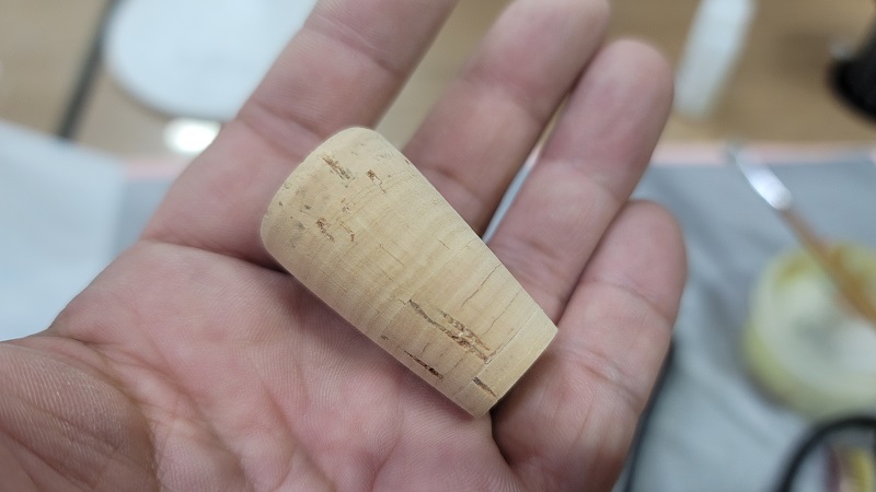 평소에 로드빌딩이나 수리/튜닝을 자주하는 터라 남는 콜크 조각은 꽤 보유하고 있었다. 커터칼로 대충 모양을 잡은 다음에 사포로 표면을 정리해 주었다.