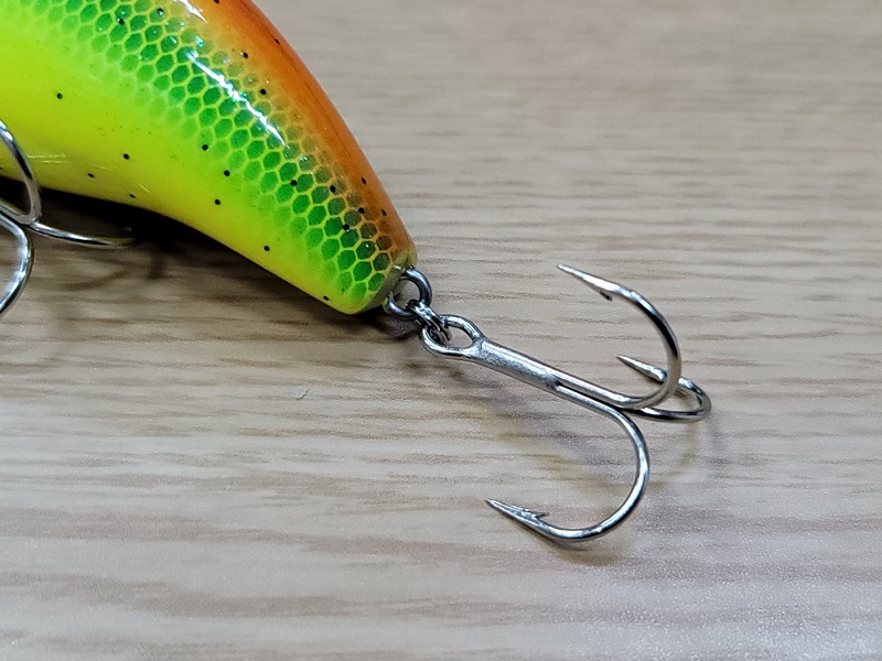 훅사이즈는 #4, 스플릿링사이즈는 #1이다. 권장 라인은 12에서 16파운드 라인이 표준이다. 래틀이 들어있는 모델이다.