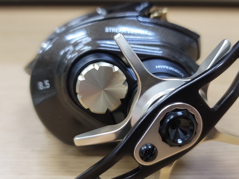 그리고 요즘 다이와 릴에 순정으로 장착되어나오는 노브가 아니라, I형 코르크 클리어 노브를 기본으로 장착되어 출시되었다. I형 하이그립타입의 순정 노브는 필자가 정말 싫어하는 노브인데, 아마 이 노브를 순정을 장착되어 나왔으면 바로 I형 코르크 클리어 노브로 바로 튜닝했을 것 같다..(4만원 절약..) 스타드랙 역시 은은한 샴페인 골드 컬러의 금속 재질로 장착되어 나왔다. 알파스 에어 TW는 수지 재질(or 자이온 재질)이었던 걸로 기억한다. 그래서 그런지 전반적으로 알파스 에어 TW보다는 고급지게 보이는 것도 사실이다..