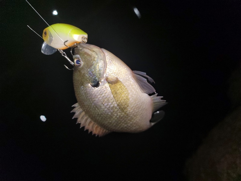 그러고 난 다음 몇번 캐스팅 후에 잠시 스테이를 길게 주고 딴짓을 하고 있었는데, 뜬금없이 거대 떡블루길이 걸려올라왔다.. 쌍계천 블루길 클라쓰...