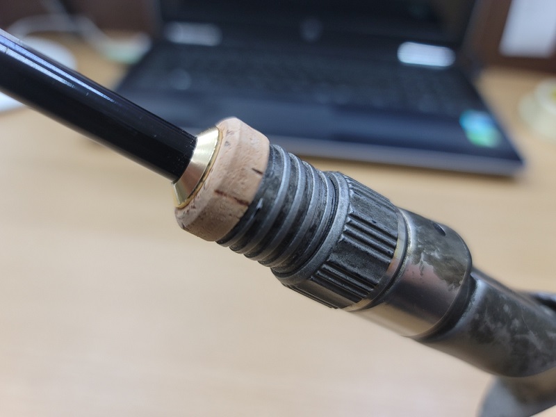 포어그립쪽은 콜크를 다듬어서 살짝 덧대어 주었다. 라이트 골드 컬러의 내경 8.5mm 와인딩 체크도 장착..가벼운 무게를 위해 최소한의 메탈 파츠만 장착해주었다..