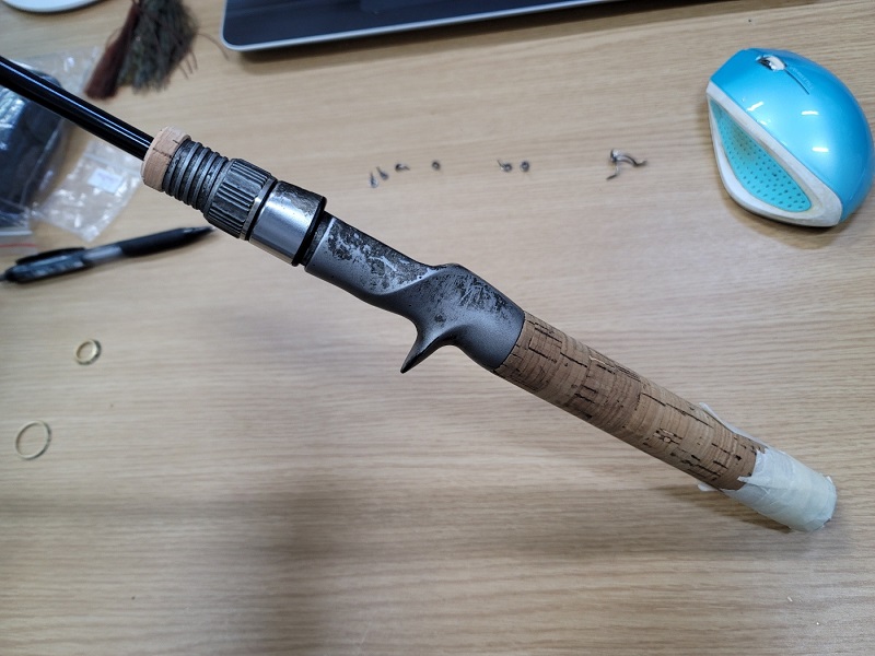 그러면서 대충 20cm정도 컷팅했을 때 만족하는 블랭크 상태가 되었다. 스파인도 적당히 찾아서 바로 그립부에 에폭시를 발라서 고정했다. 탑가이드 바로 장착..