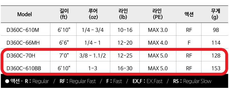 토레이 T1100G 카본 브랭크를 채용한 배스로드시리즈.. 데이즈 360