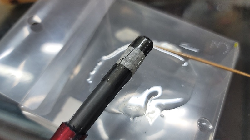 3) 윗부분에 삽입될 부분도 공차를 잡기위해 순간접착제로 살짝씩 표면을 코팅해주는 방법도 좋다. 그리고 마스킹 테이프를 한겹씩 접착하면서 공차를 줄여나가는 것도 좋은 방법이다.