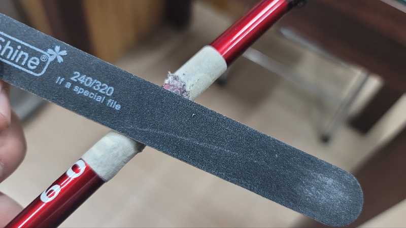 5) 본딩이 완전히 굳으면 조인트부분을 그라인더와 샌드페이퍼 스틱으로 다듬어 준다.