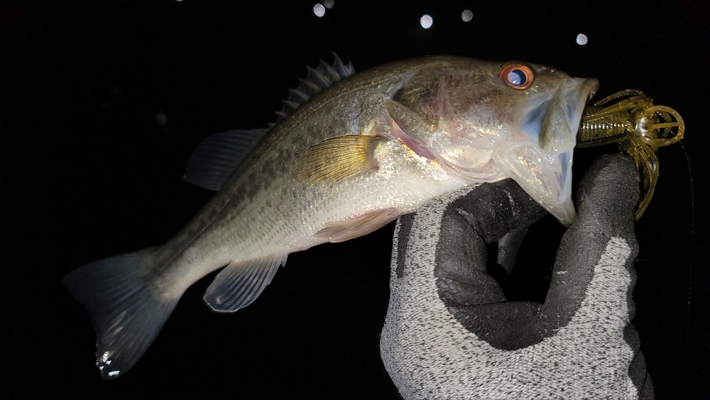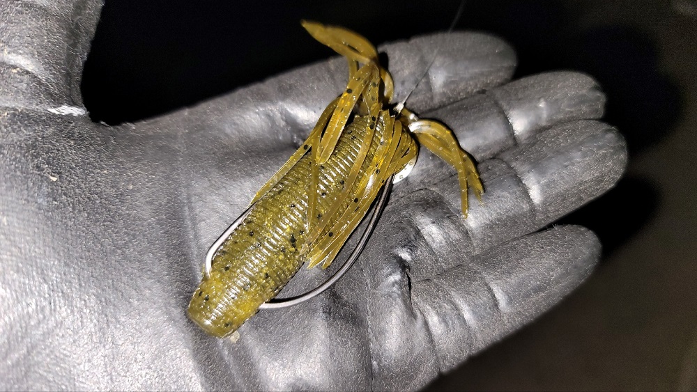 채비는 OSP 도라이브 쉐드 3.5" 노씽커, 스위밍으로 낚아내었네요..