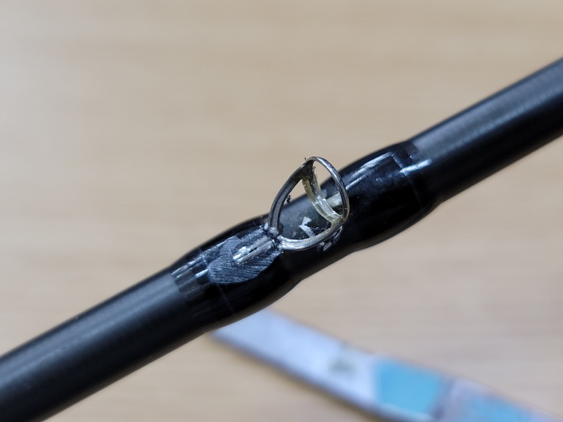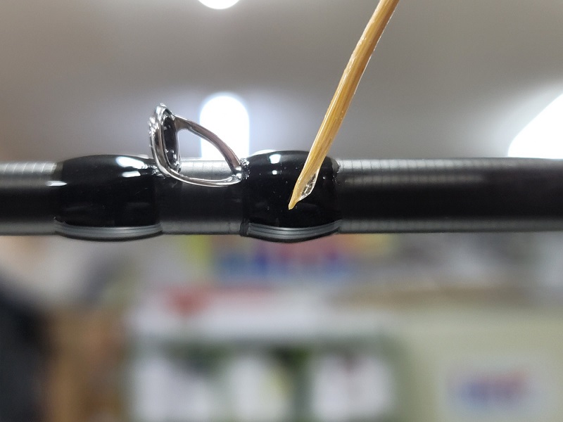 가이드링이 빠진 베이트 로드가 입고되었습니다.. 이 로드는 티탄프레임에 토르자이트링이 세팅된 가이드를 장착하고 있습니다. 토르자이트 링은 가벼운 무게, 작은 부피, 적은 마찰계수로 최고급 가이드링 소재이지만, 가격이 비싸고 내구성이 약하고 프레임에서 이탈이 잘 되는 단점이 있지요..
