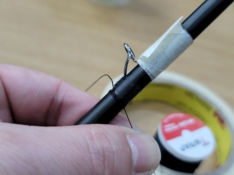 교체할 새 가이드를 정확하게 위치를 잡고 마스킹테이프로 고정한 뒤 랩핑사로 감아나갑니다. 빈틈없이 차곡차곡 쌓아올라간다는 느낌으로 감아나가야합니다.