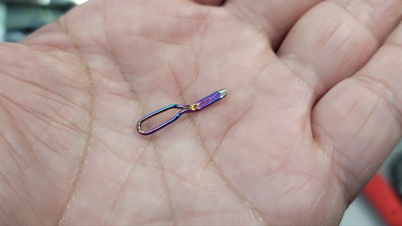 이번에 사용한 훅키퍼이다. 훅키퍼의 풋부분은 미리 그라인더로 경사지게 갈아놓았다. 이는 랩핑사를 감아올릴 때 자연스럽게 감아올리기 위함이다.